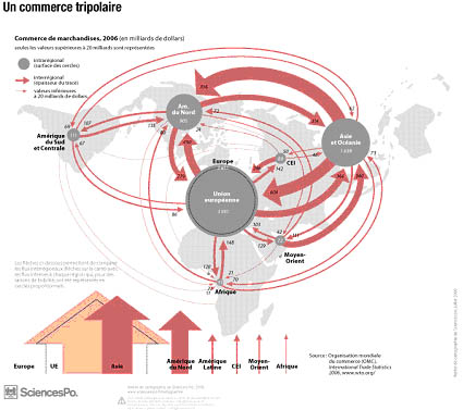 BO : « On constate que les flux qui parcourent le monde dessinent des réseaux dont les noeuds sont fortement concentrés dans la Triade » / « les aires de puissance contrôlent le reste de la planète »