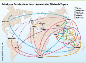 Orientations et mots-clés : On constate que les flux qui parcourent le monde dessinent des réseaux dont les noeuds sont fortement concentrés dans la Triade. On identifie ainsi la mondialisation comme l'intégration des économies, des hommes et des territoires dans un système à l'échelle de la planète. On étudie le rôle de ses acteurs : les États, les firmes transnationales, certaines organisations non gouvernementales (ONG)."