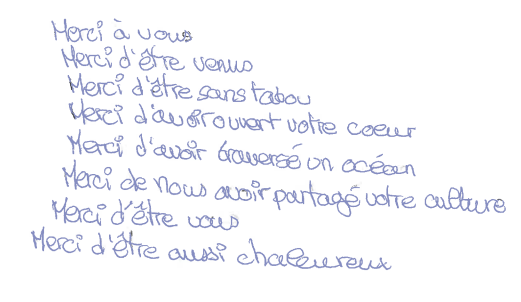 Le lendemain, lors d’une séance bilan intitulée MERCI ! les élèves écriront, dessineront leurs remerciements à Yara El-Ghadban.