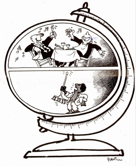 Accroche : une photographie aérienne oblique (Sao Paulo, Brésil) et un dessin de presse (Plantu, la planète entre Nord et Sud) introduit le distingo scalaire dans la notion de " développement inégal ".