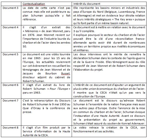 On peut attendre la problématique suivante proposée par les élèves : « Pourquoi le plan Schuman est-il considéré comme un instrument de la réconciliation et du rapprochement franco-allemand ? Que propose-t-il ? » ou avec le document 1 « Pourquoi Schuman est-il considéré comme le père de l’Europe ?».