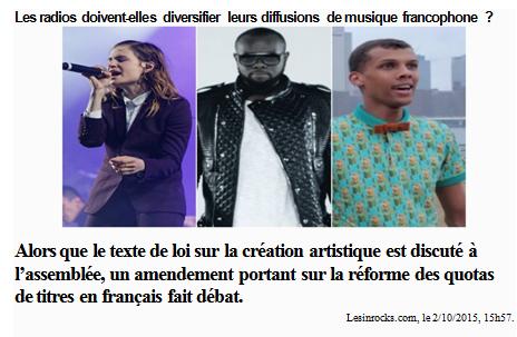 Proposition de séquence EMC première : l’amendement sur les quotas des titres français à la radio, un événement et son exploitation médiatique