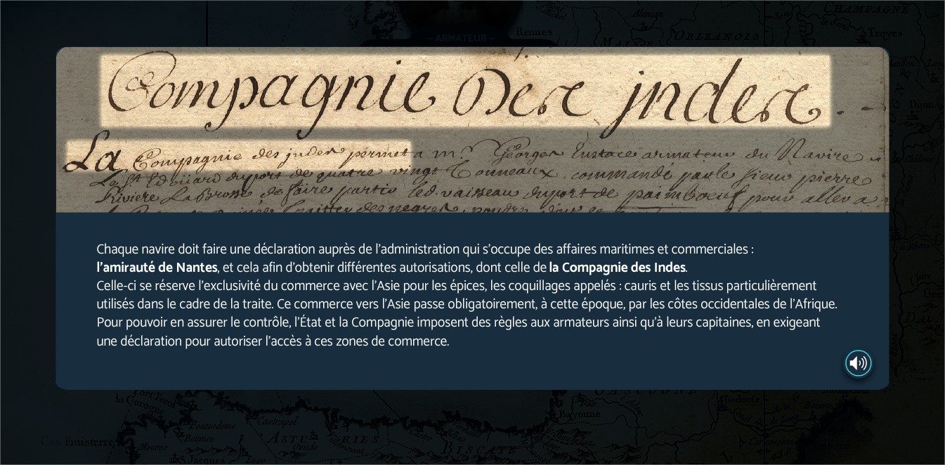 Exemple d’une réponse : la réponse est mise en lumière dans le document d’archives et l’explication est lue et entendue par l’élève.
