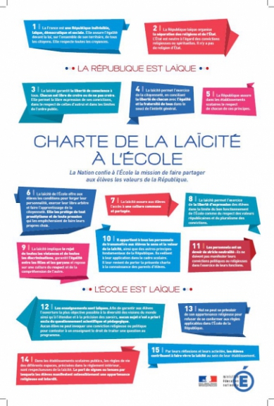 Charte de la Laïcité à l’école / Affiche Séparation Eglise-Etat / Article 1er Constitution française /