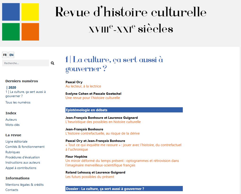 Nouvelle revue d'histoire culturelle avec accès gratuit aux articles