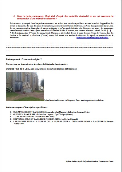 Séance 7 Quels sens donner à la mémoire collective de la Grande Guerre ?