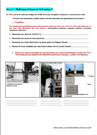 Extraits de Les âmes grises de Philippe Claudel (2003) + Cris de Laurent Gaudé (2001) + prise de notes de la séance 1 sur le monument aux morts de Fontenay Le Comte (séance1)