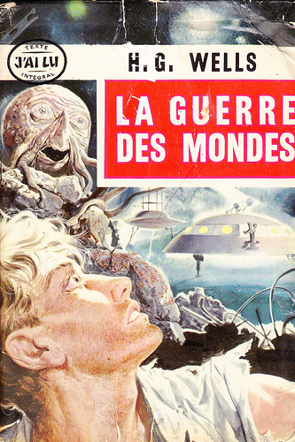 La Guerre Des Mondes, 1898(Anticipation) => extraits / lecture cursive. Les martiens attaquent la planète Terre, et ravagent tout, sans aucune pitié. Malgré toute sa puissance militaire, l'humanité ne fait pas le poids. Seuls quelques uns parviennent à survivre, cachés, affrontant leur pire ennemi : leurs semblables. L'adaptation radio qu'en fit Orson Welles en 1936 provoqua un vent de panique aux Etats-Unis. Premier canular radiophonique de l'histoire !