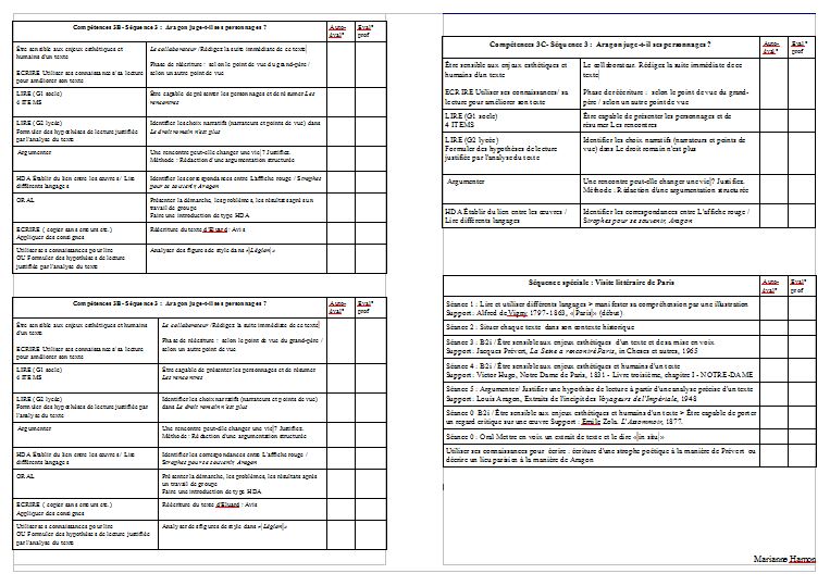 Exemples de tableaux récapitulatifs des séquences : Exemple de bilan des compétences :