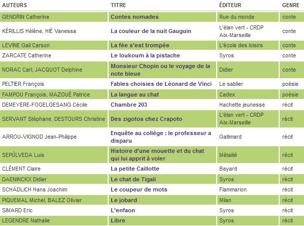 Récits, romans, contes, pièces de théâtre, poésie, bandes dessinées. Cette liste présente les ouvrages conseillés par niveau de classe. Elle complète les titres de la littérature patrimoniale indiqués dans les programmes officiels de français et étudiés en classe.