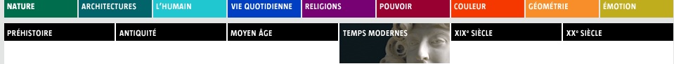 - une entrée par thèmes (nature, pouvoir, couleur, émotion, géométrie ...)