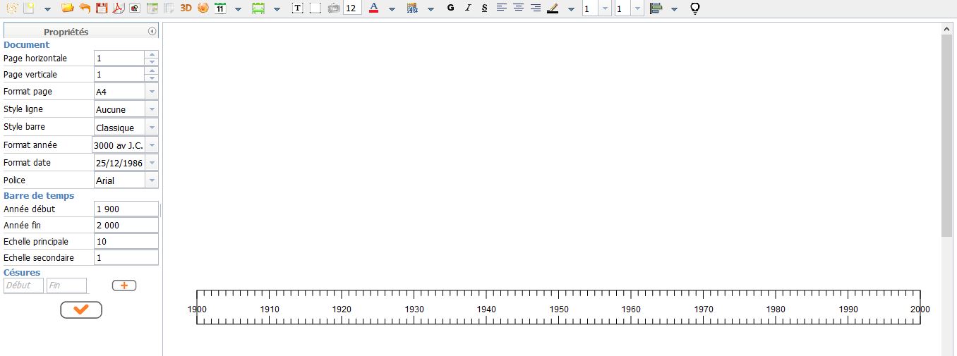 Des possibilités multiples Il est possible de créer des frises générales (de -5000 à nos jours) avec ou sans césures. Les possibilités d'export permettent de générer des fichiers pdf, image, Excel, Open Office ou en 3D (webGL). Il est possible de sauvegardez la frise pour pouvoir la recharger et la modifier.