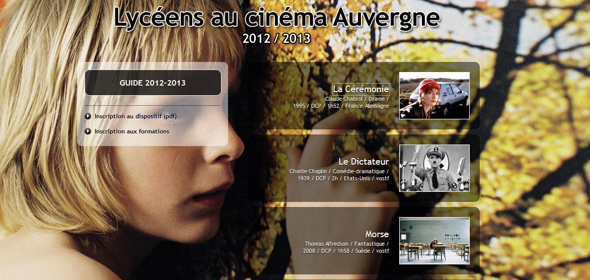 Le site du "Pôle régional d'éducation à l'image" de la région Auvergne propose de nombreuses ressources pour l'analyse filmique : outils pédagogiques, fiches sur les films et l'histoire du cinéma. La page donne également accès à des ressources sur les films de la programmation "lycéens au cinéma" :