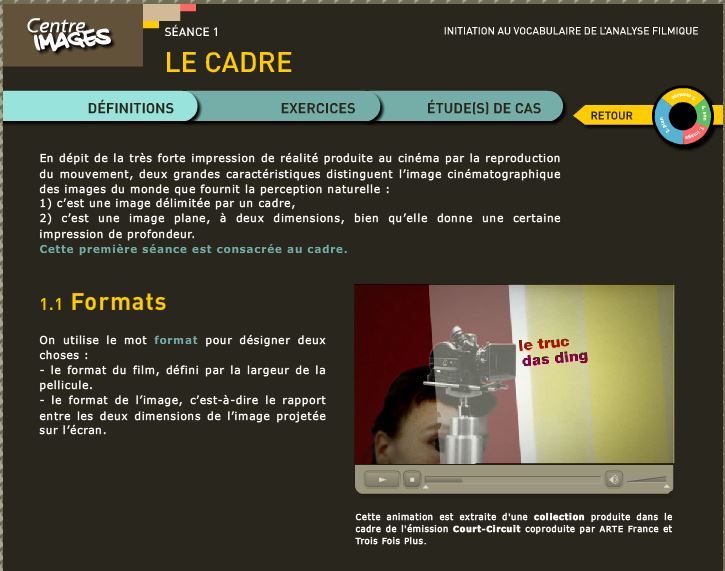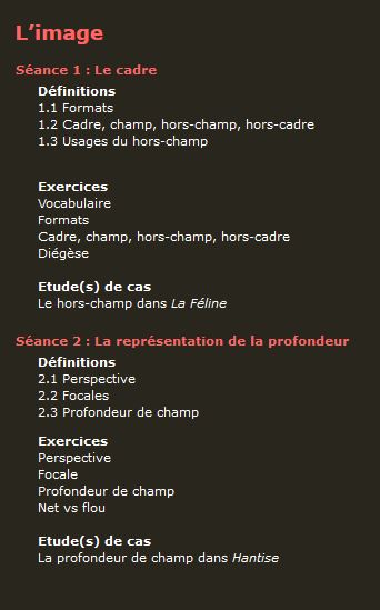 - étude de cas : exemples de cas d'analyse filmique reposant sur les notions définies précédemment.