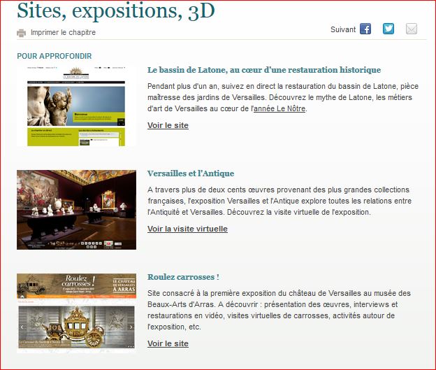 Le tarif d'une visio conférence est de 75 € HT soit 89,70 € TTC . Ce tarif inclut le test technique préalable, l'accès à la plate-forme le jour de la visite et la prestation d'un conférencier des musées nationaux. d'autres ressources numériques Le site propose de nombreuses ressources telles que des vidéos, des visites 3D, des diaporamas, ainsi qu'une sitographie très riche pour approfondir par exemple les recherches des élèves.