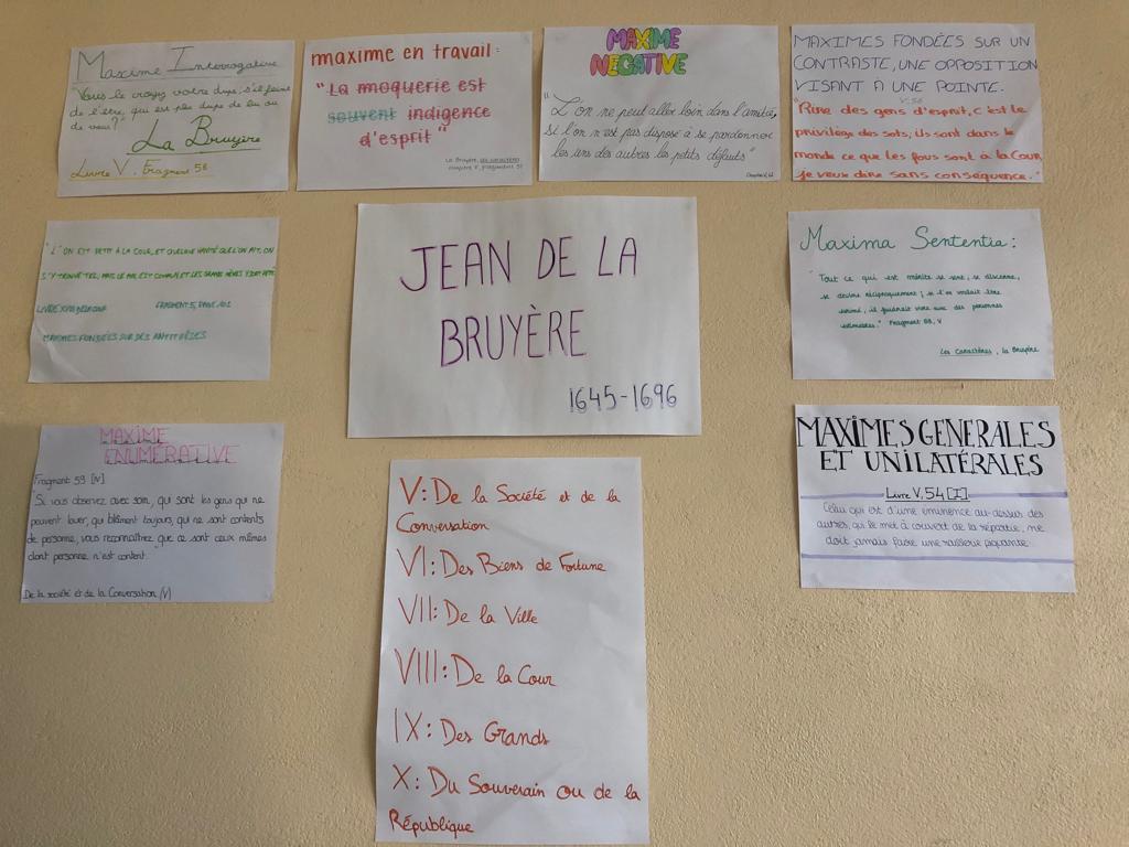 Cette activité est née de la nécessité de comprendre les choix d’écriture entre maximes et portraits au sein des Caractères, après que les élèves aient choisi librement en lecture linéaire un passage de maximes (les élèves décident par vote le choix des passages qui seront étudiés en classe et qui donneront lieu à des analyse présentées lors de l’oral de l’EAF) ;