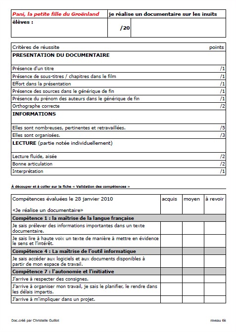1/ visionnage en classe entière et évaluation par les pairs suivant le barème donné lors de la séance précédente