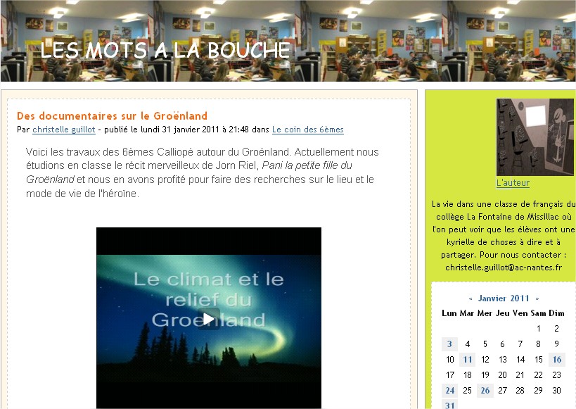 baladeurs numériques, salle multimédia, logiciel de montage (widows movie maker), blog de classe