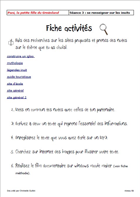 place dans la séquence : activité réalisée dans le cadre de l'étude de l'œuvre intégrale Pani la petite fille du Groëland de Jorn Riel (récit merveilleux)
