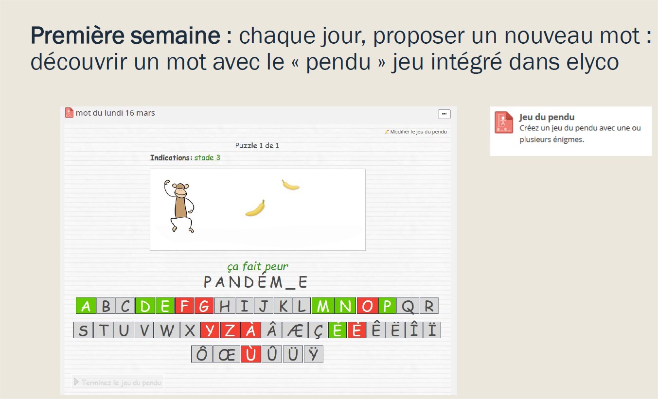 Et pourquoi ne pas demander à chaque élève de proposer des mots pour une autre semaine… bref il y a beaucoup d’idées simples pour continuer.