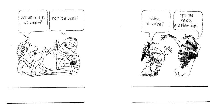 Des petits dialogues sont lus par les élèves, sur le modèle "Salve ! Ut vales ?", inspiré de la méthode Usborne, méthode audio-orale, utilisée en Grande-Bretagne principalement. A la fin de la séance, les élèves qui le souhaitent peuvent jouer ces dialogues.