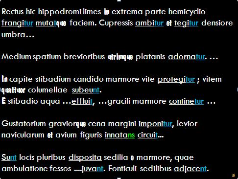 Le recours à un diaporama permet aux élèves d'accéder à la lecture et la compréhension d'un texte latin, chaque diapositive mettant en évidence les éléments de sa structure de ce texte.