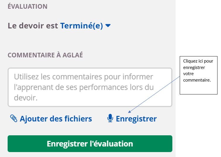 - Enfin, la fonction Devoir permet aux élèves de remettre des travaux oraux et aux professeurs de les commenter directement :