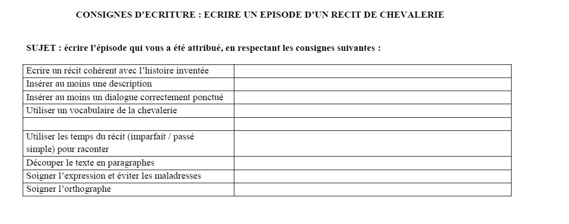 Des consignes d'écriture communes sont données, elles donnent un cadre précis au travail et serviront de critères pour évaluer la production écrite.