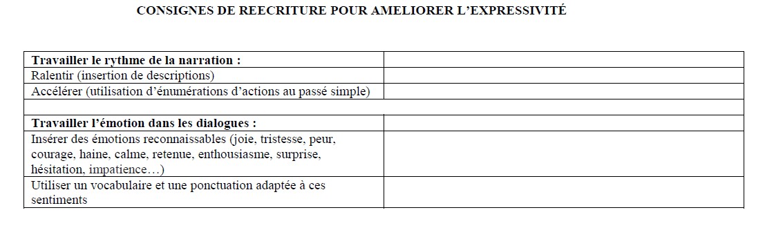 Des consignes de réécriture sont également données pour améliorer l'expressivité :