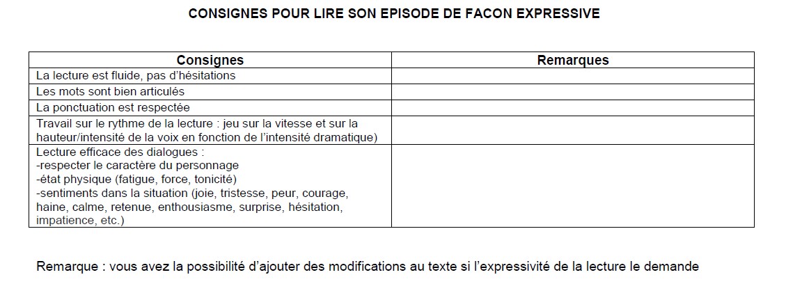 - lire de façon expressive sa production écrite, travailler la mise en voix ;