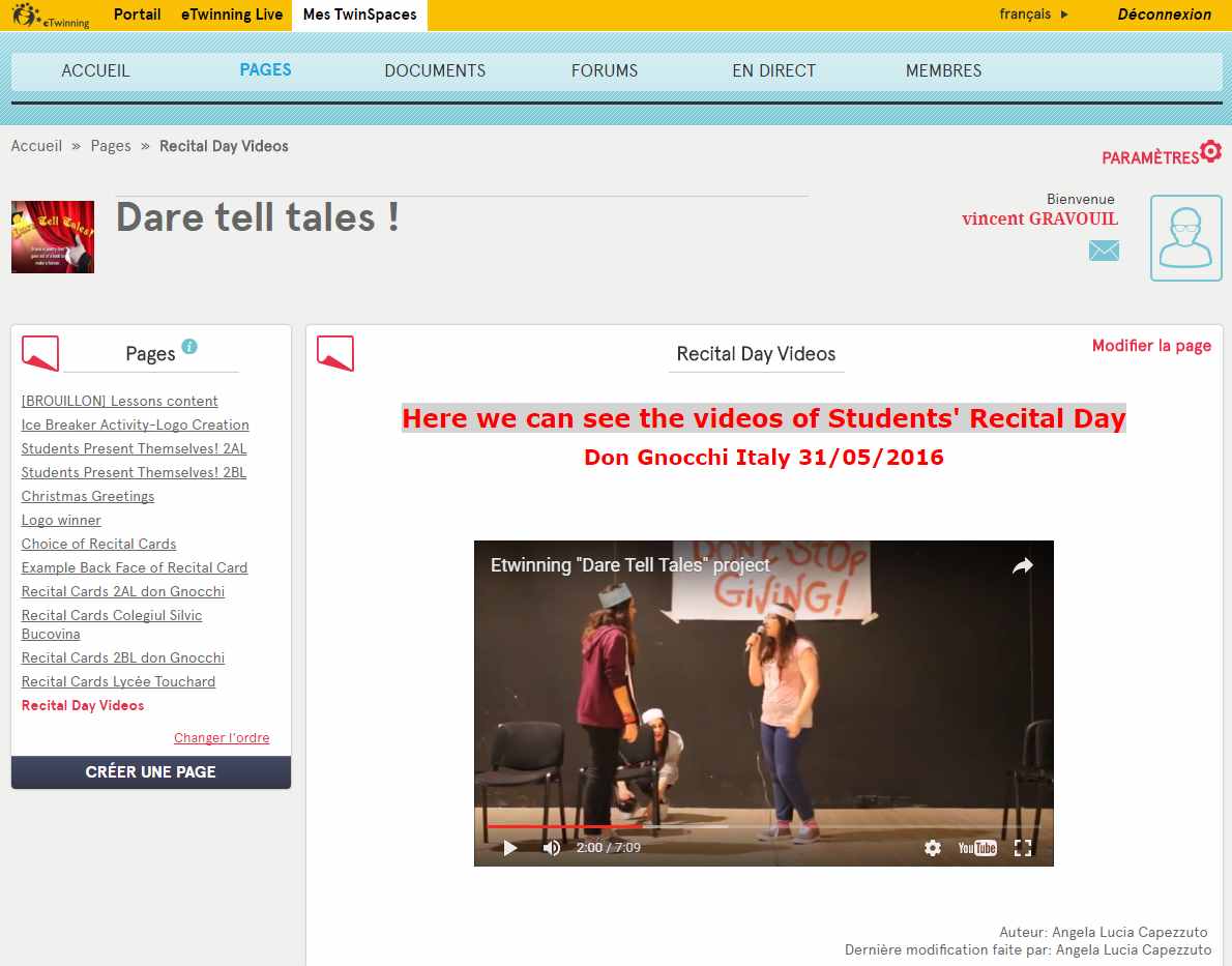 Un aspect complémentaire du projet consistait à inscrire notre enseignement dans un cadre européen : nous avons soumis ce projet sur la plate-forme collaborative e-twinning sous l’intitulé "Dare tell tales", cherchant à impliquer d’autres groupes d’élèves, de différents pays. L’objectif était de mettre sur pied, autour du thème du conte, un jeu de cartes occasionnant des situations d’improvisation : à partir des constituants du conte tirés au hasard, les groupes d’élèves devaient improviser un court récit. Notre projet se déroulait en co-animation, impliquant un professeur de lettres et un professeur d’anglais (Mme Stéphanie Marcos). Un lycée italien et un lycée roumain ont répondu à notre appel, et une forme de collaboration a pu se mettre en place, qui a occasionné un travail en langue anglaise.