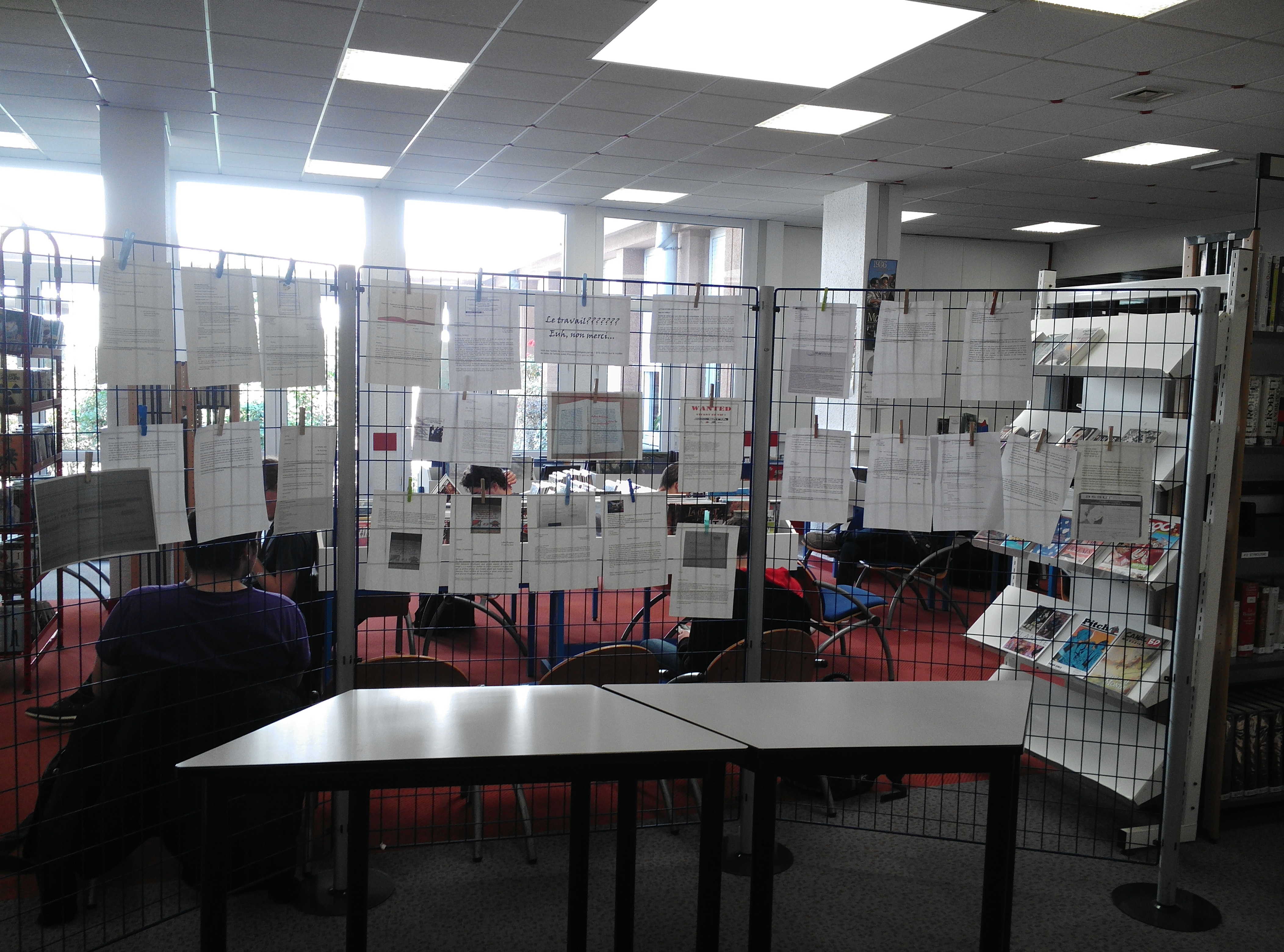 Le fait de les afficher au CDI est une autre étape de cette valorisation : c'est aussi un moyen de les faire entrer dans ce lieu qu'ils ont du mal à s'approprier, d'autant qu'ils ont dû aider les documentalistes à faire l'accrochage.