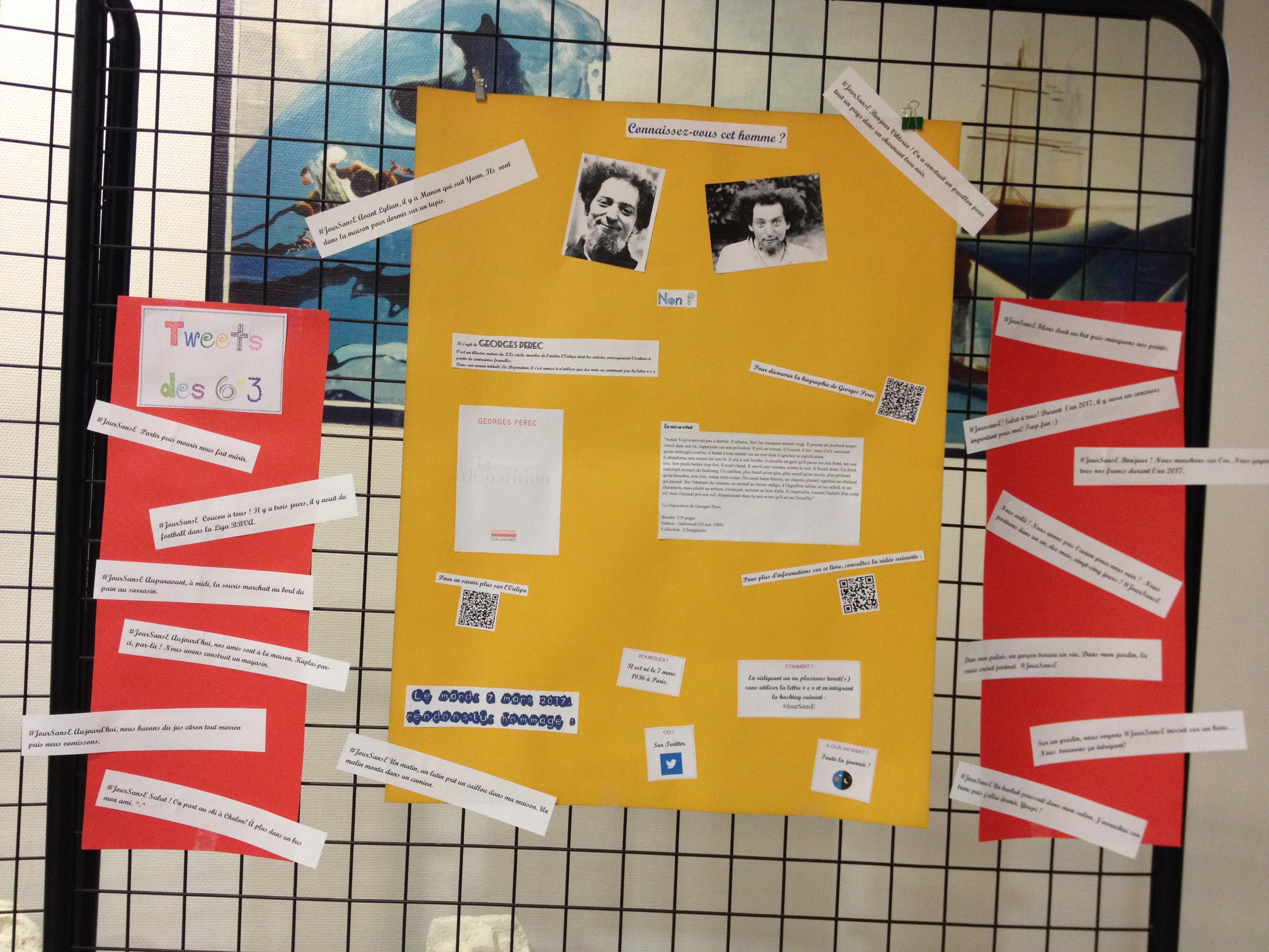 A l'origine du projet, il y a bien sûr Perec, qui explique son oeuvre. La notion de lipogramme est abordée, ainsi que le support sur lequel seront produits les textes : twitter.
