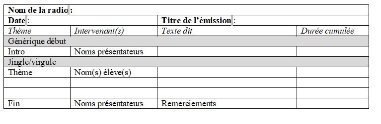Préparation du conducteur : à la fin de la séance, on nomme deux animateurs qui écrivent les transitions et les relances, choisissent le générique de l’émission et rédigent le plan de l’émission.