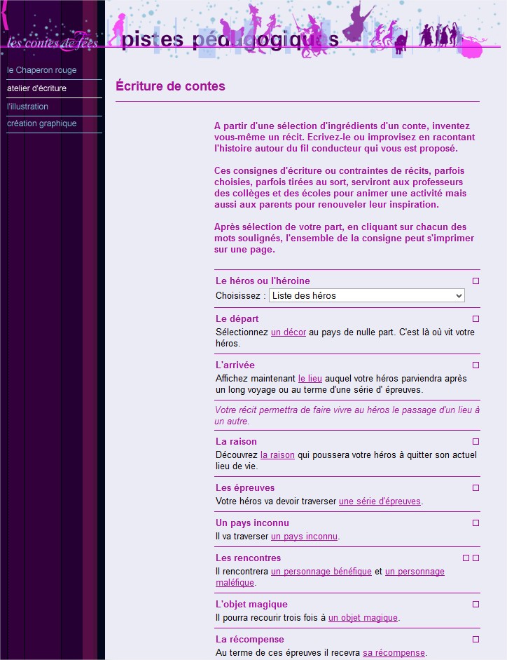 Travail sur l'atelier d'écriture de l'exposition de la BNF «  il était une fois ». Les groupes sont constitués de 4 personnes (maximum). Par groupe, les élèves doivent choisir les ingrédients du conte qu'ils vont écrire.