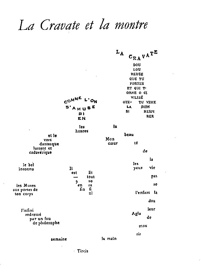 Le calligramme est un objet poétique très fréquemment exploité au collège et ce dès la classe de sixième. Pourtant cette forme poétique, dont la mise en page évoque le sujet traité, n'est pas forcément simple à appréhender. Si le dessin est perçu comme un guide de lecture, il peut aussi jouer les perturbateurs, notamment lorsque le texte se fait moins explicite. Le lecteur se trouve alors dans la position inconfortable, quoique stimulante, de déchiffreur. Or, c'est en réalité la situation de tout lecteur face à un texte littéraire : l'une des spécificités de la littérature étant que le sens n'est jamais donné de façon univoque mais doit au contraire être construit par le croisement d'indices. Il a donc semblé intéressant d'amener les élèves à réfléchir aux stratégies de lecture qu'ils mettent en œuvre face à un texte qui leur échappe.