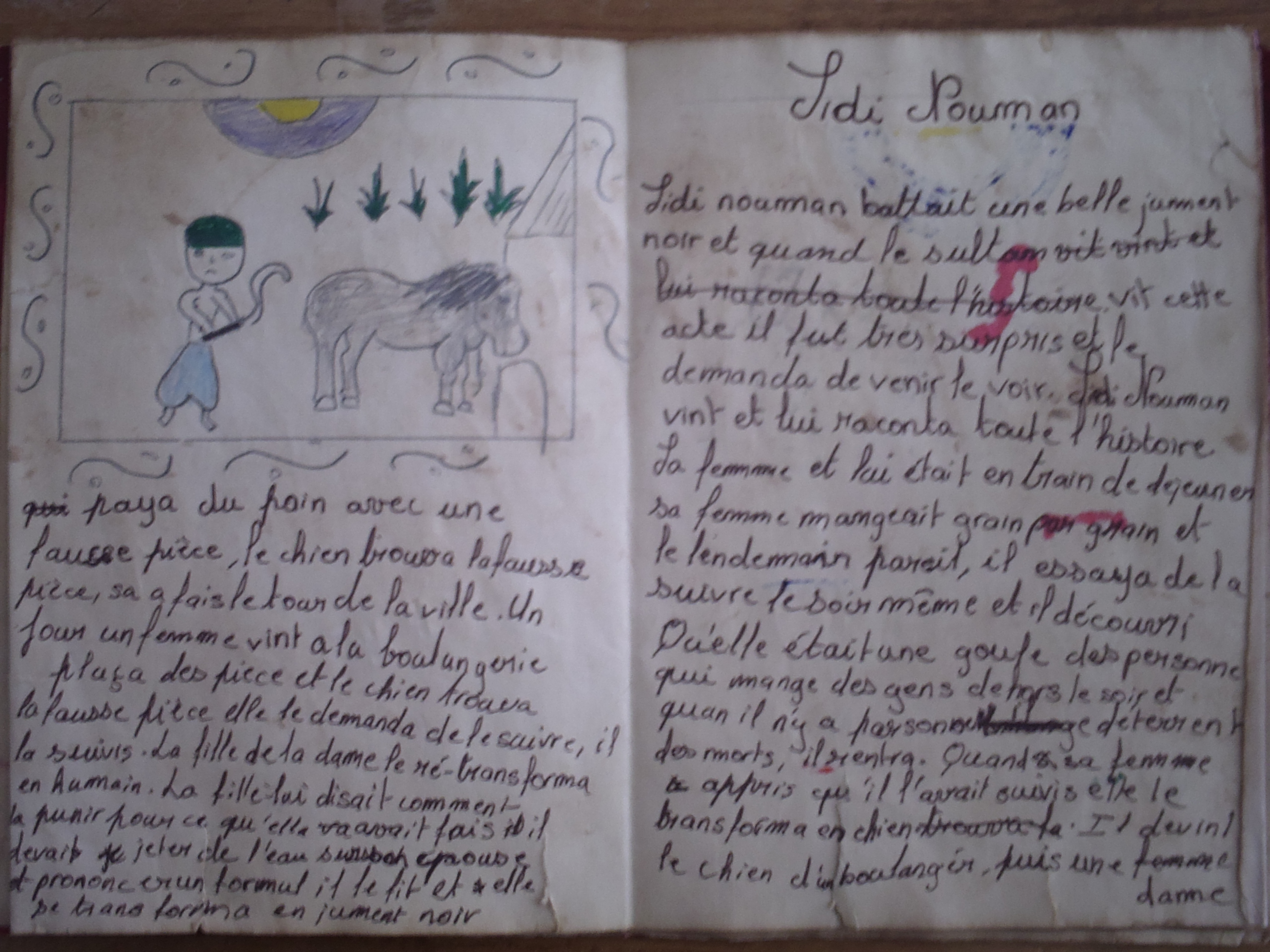 | Il était une fois à Bagdad un homme nommé Khaled. Un jour un sultan et le vizir se promenèrent dans un pré et ils virent un homme en pleurs. Le sultan dit au vizir de suivre le jeune homme jusqu'à chez lui et le lendemain ils amènent le jeune homme au palais pour lui demander pourquoi il était si malheureux. "O mon roi ! dit le jeune homme, je m'appelle Khaled et je vais vous raconter pourquoi je suis malheureux, continua-t-il. Il y a d'ici quelques années je me promenais dans le même pré où vous m'avez vu hier. Puis je rencontrai une belle demoiselle nommée Halima. Je tombai tout de suite sous son charme et lui demandai de m'épouser. Elle accepta à la condition que tous les samedis elle puisse s'enfermer dans sa salle de bain jusqu'au lendemain. J'acceptai. Nous avons eu trois enfants nommés Ali, Amina et Abdel. Comme elle m'avait prévenu avant notre mariage tous les samedis elle s'enfermait dans la salle de bain. Tout se passa bien jusqu'au jour où nous reçûmes la visite de mon frère Samir. ... |
