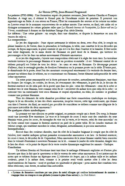 Une séance d'analyse de l'image, "Le Verrou" de Fragonard, en prolongement d'une séquence sur Les Liaisons dangereuses. En réinvestissant les apprentissages réalisés à partir du roman, les élèves sont conduits à analyser et à interroger l'œuvre du peintre et à circuler ainsi entre des arts différents au sein d'une même époque culturelle.