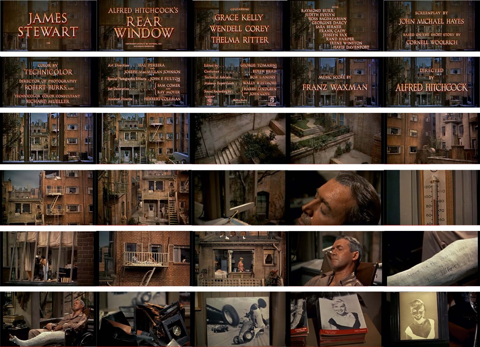 Pour ce double objectif, nous avons choisi de travailler sur le générique, en version originale, de Fenêtre sur cour d'Alfred Hitchcock, de la première image au fondu au noir se situant juste avant l'entrée en scène de l'aide soignante.