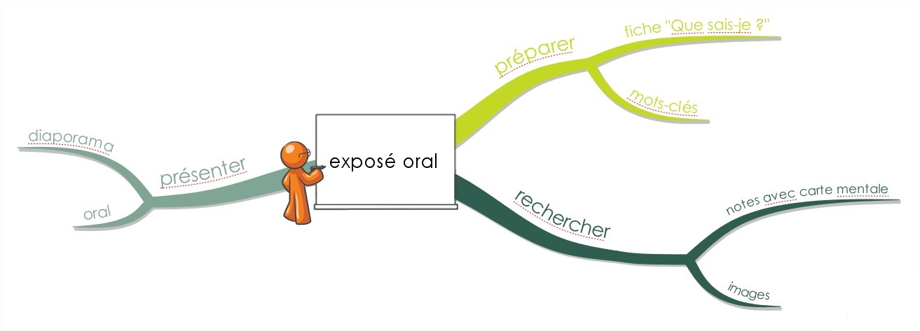L'utilisation systématique et conjointe du diaporama et de la carte mentale pour les présentations orales a de multiples avantages. Ces deux outils permettent d'apprendre aux élèves à non seulement structurer leur prise de parole mais aussi à cibler leurs recherches.