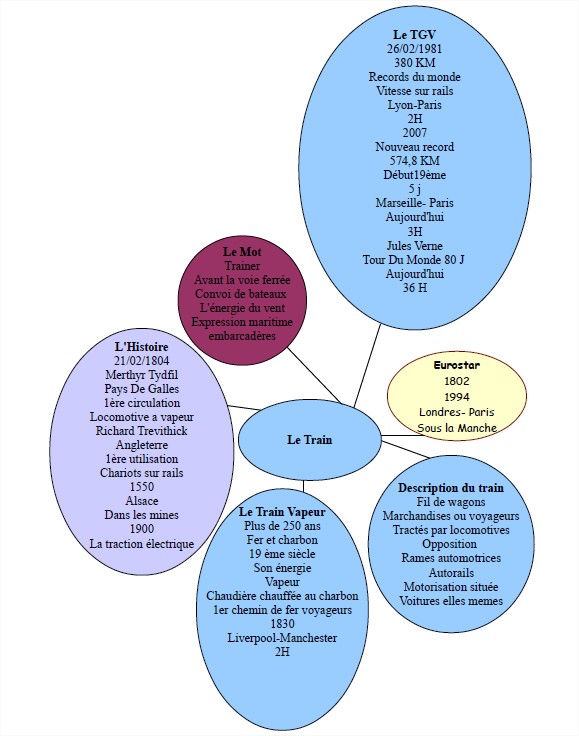 exemple de carte mentale réalisée par deux élèves sur un thème contraint, en lien avec les sciences : le train