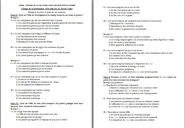 1. A l'issue de la séance, le professeur ramasse les plans : correction et conseils individualisés ; constitution d'un corrigé commun pour chaque sujet à partir des bonnes idées trouvées dans les plans des élèves.