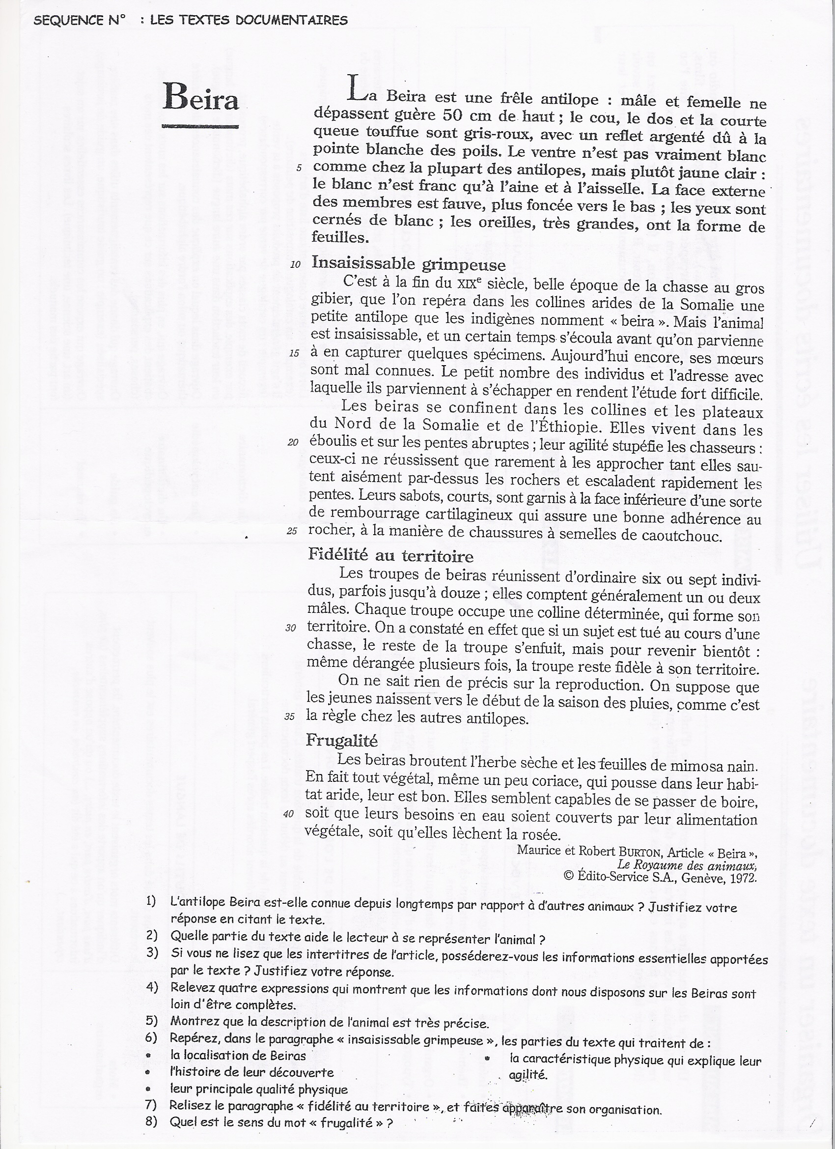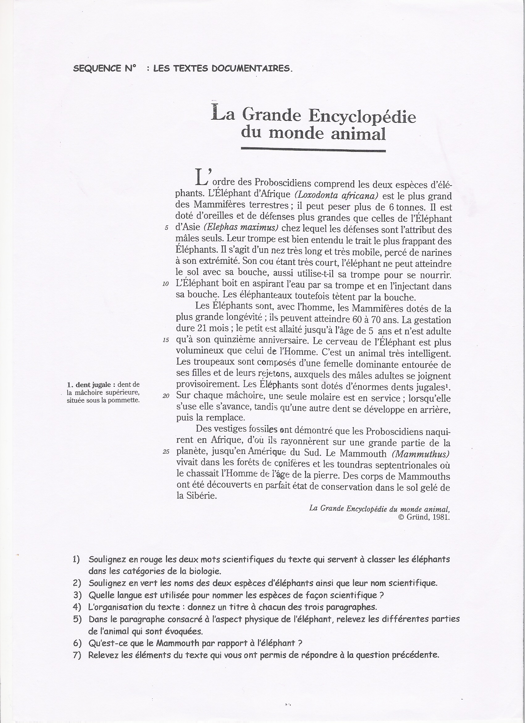 Faisant suite à une séquence orientée principalement vers la lecture, cette deuxième séquence de l'année, dédiée aux textes documentaires, est une séquence à dominante écriture.