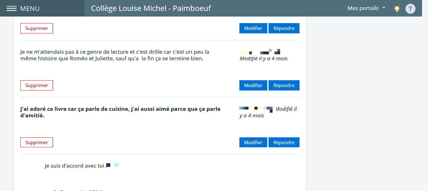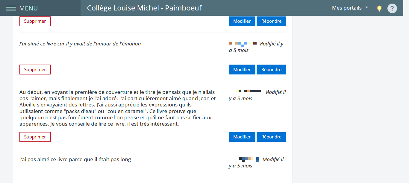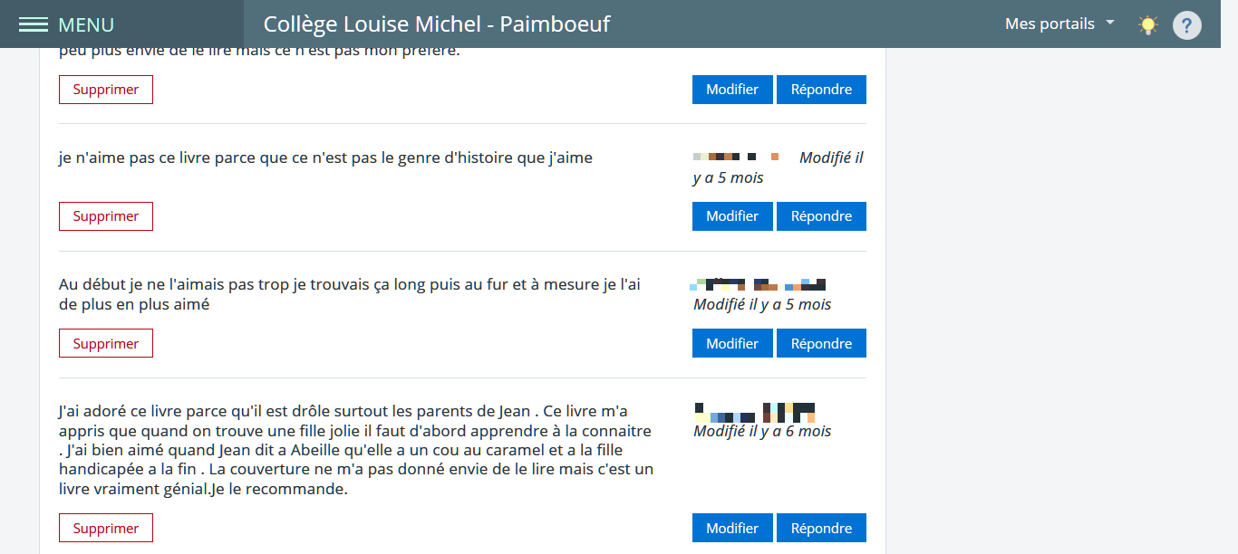 Cependant, la participation au forum et l’échange avec les camarades est un projet qui stimule les élèves, dans un premier temps. L’idée d’inverser les rôles dans le sens où les élèves "évaluent" les romans pour élire celui qu’ils préfèrent les intéresse. Au fur et à mesure, il convient aux professeures de leur rappeler l’existence du forum qu’ils ont tendance, pour certains, à délaisser.
