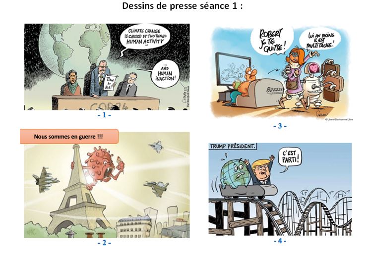 1- Distribuer les dessins de presse et laisser le temps de s’en imprégner (imprimer fichier dessins de presse)