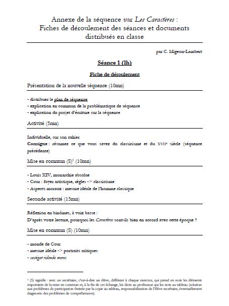 Une séquence en seconde qui permet une première approche de l'objet d'étude "genres et formes de l'argumentation aux XVIIème et XVIIIème siècles" à travers l'étude des Caractères de La Bruyère. La séquence est conçue pour permettre un réinvestissement régulier des apprentissages dans un projet d'écriture : créer les "caractères du XXIe siècle".