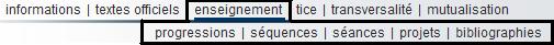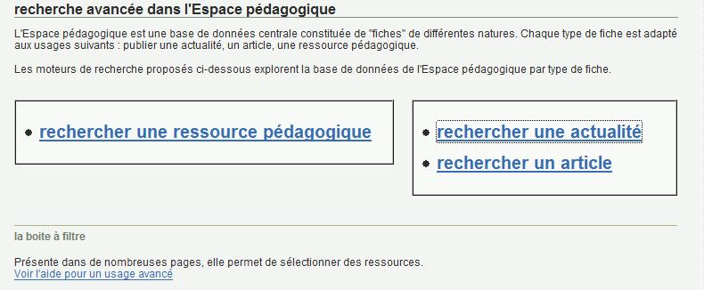 - une recherche dans la boîte à filtres de la page "enseignement" permet de rechercher une information dans cette page mais aussi dans "progressions", "séquences", "séances", "projets" et "bibliographies" :