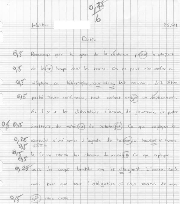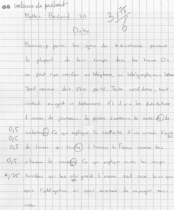 Une dizaine de jours après cette séance, rendez vous fut pris pour une future tentative manuscrite de cette fameuse dictée de Kessel. La moyenne des notes est dans cette classe est passée de 2/6 à 4/6; En 3A, la moyenne a progressé de 1.5 à 3 sur 6.