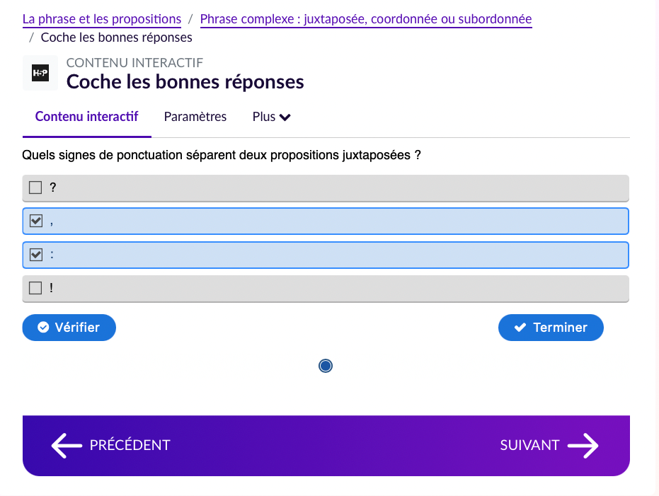 L’activité n’étant pas évaluée, chacun avance à son rythme sans pression. La dimension gamifiée rend la pratique de la langue plus ludique, mais pas seulement. Les différentes modalités (associer, repérer, compléter, écrire, …) permettent d’analyser les notions à travers différents prismes.