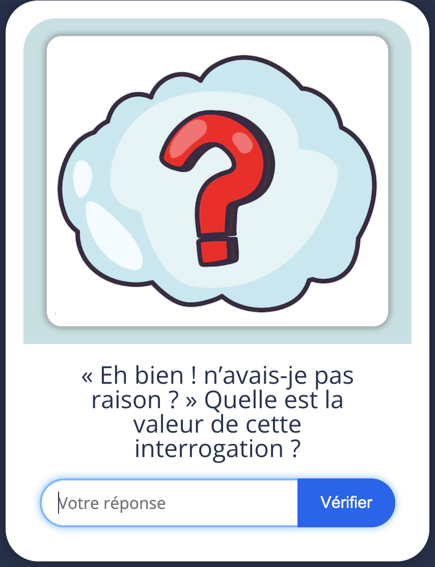 La suite du parcours montre que cette étape (dont je pensais qu’elle serait peut-être cantonnée à un défi ludique) s’est révélée fructueuse pour permettre aux élèves de manier le vocabulaire lier à l’analyse de l’interrogation.